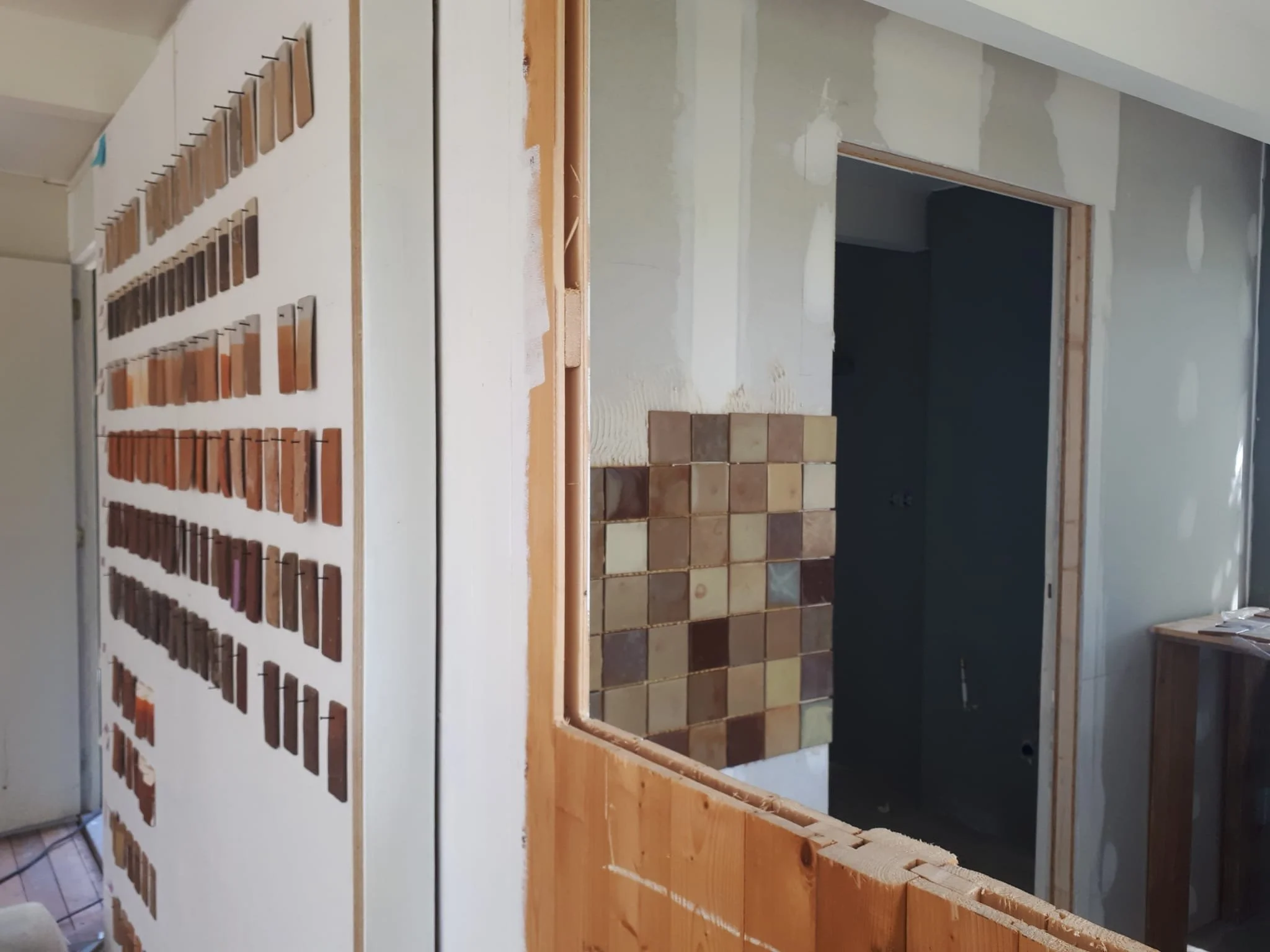 Deze tegels zijn door Fabricaat handgemaakt van lokaal gedolven rivierklei. Fabrikaat verwerkt de klei op verschillende manieren: gieten, handvormen en 3D-printen behoren allemaal tot de mogelijke toepassingen van de klei. Zie voor meer informatie over het productieproces van werkzame klei onze kleimuur.